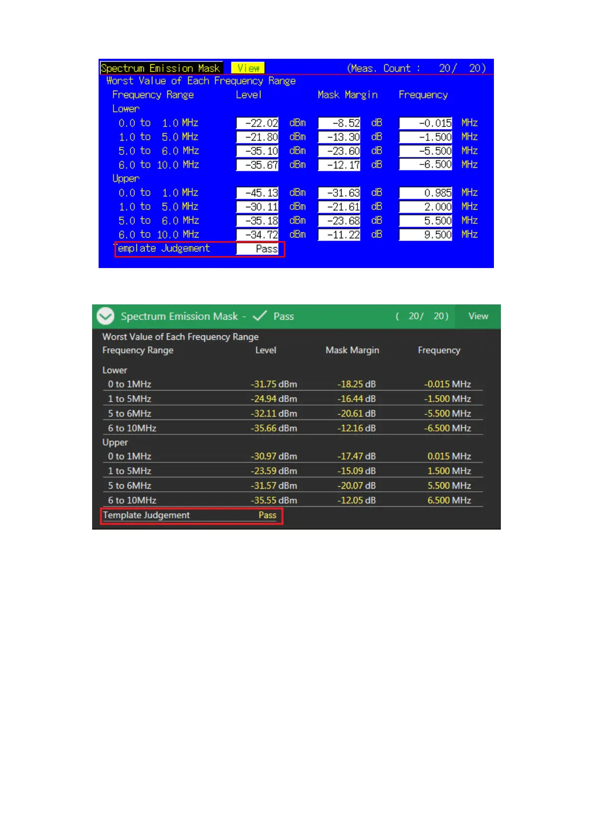 Figure 3.1.28-2 Example of Measurement Result when Test Parameter is TX1 - Max. Power (QPSK/PartialRB)