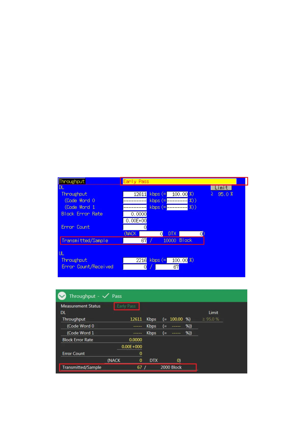 4. Execute TPUT_EARLY ON to set Rx Measurement Parameter - Throughput - Early Decision to On.