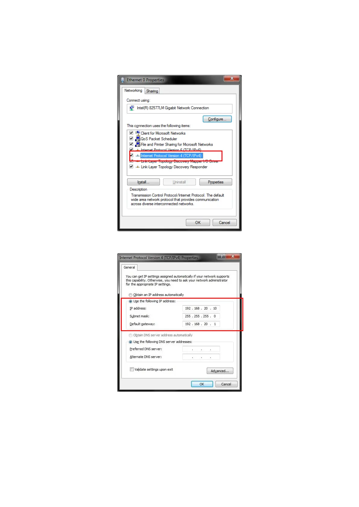 4. Click [OK] to close the Internet Protocol (TCP/IP) Properties window.