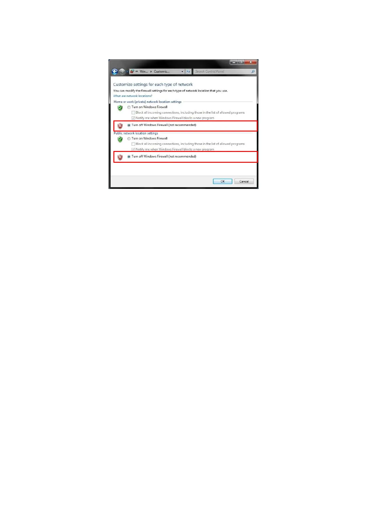 5. Select the [Advanced] tab at the Local Area Connection Properties window and disable the Windows firewall.