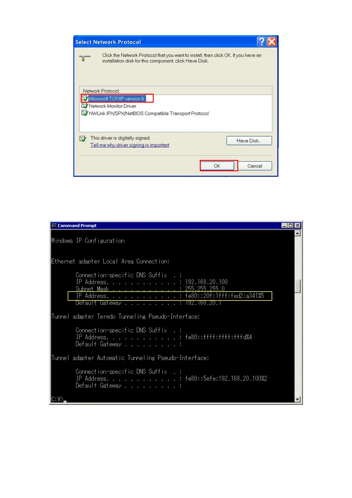 Figure 5.1.2.2.1-3 Network Protocol Selection Screen (Windows XP)