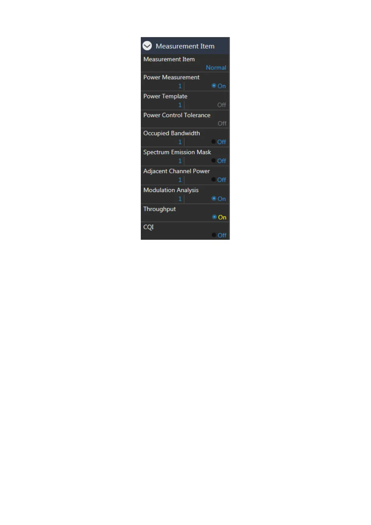 Figure 5.1.4.1.1-12 Throughput Measurement Setting at Fundamental Measurement Parameter Screen