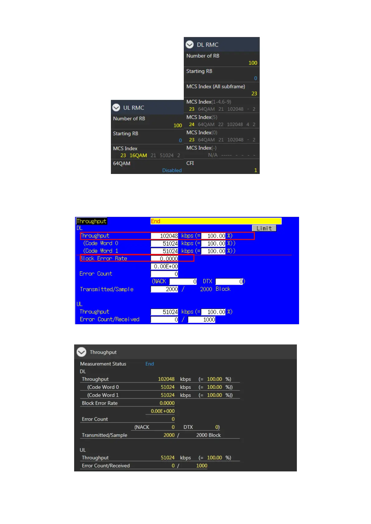 Throughput and the Block Error Rate results of the Fundamental Measurement screen.