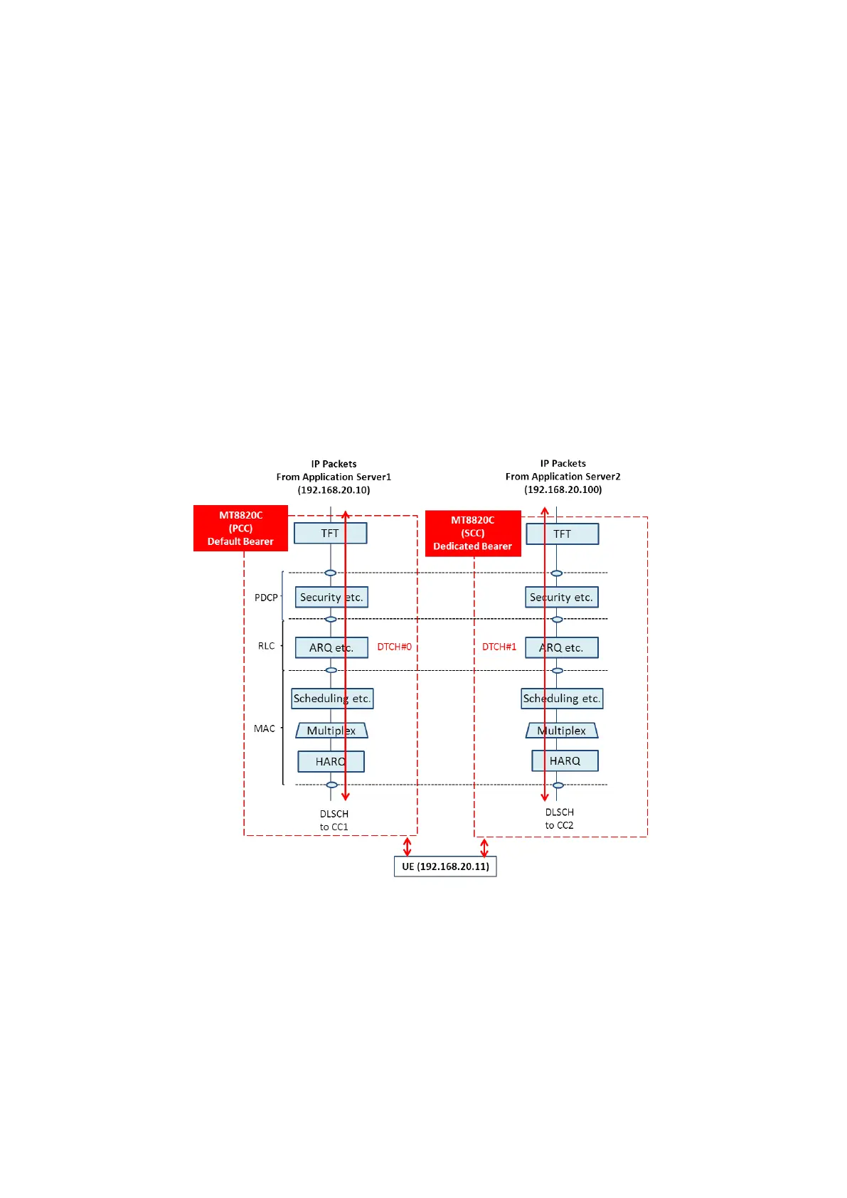 MT8820C functioning as SCC communicates with the UE using the IP data path of the Dedicated EPS Bearer. The