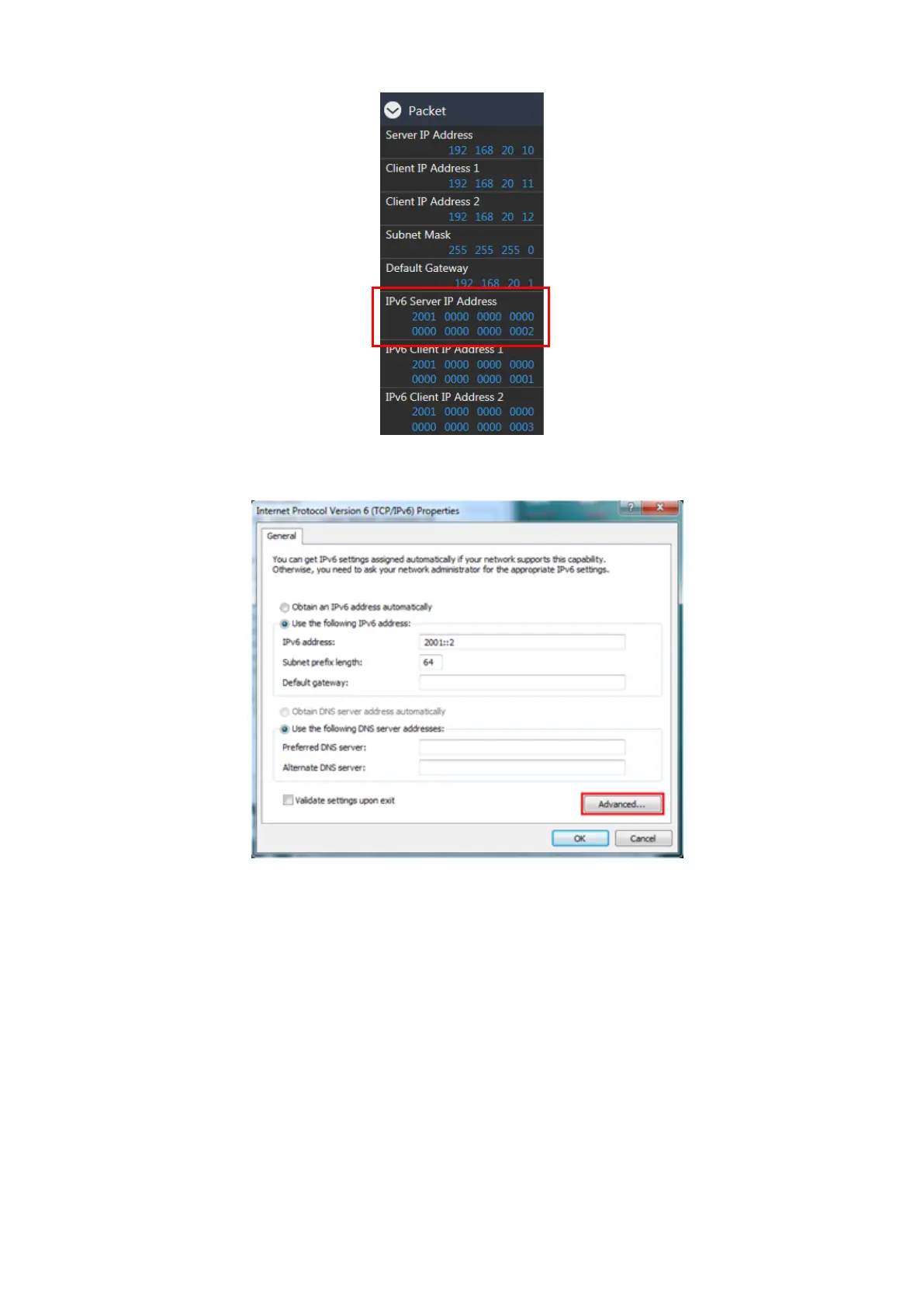 Figure 7.1.2.2-3 Server IPv6 Address Setting Screen (MT8821C)