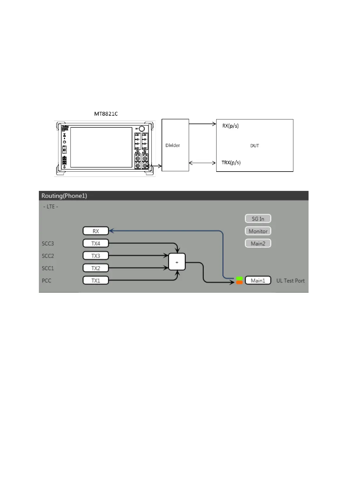 Figure 2.4.1-1 Connection Diagram and Internal Routing Diagram for 4DL /UL CA, Tx and Rx Test