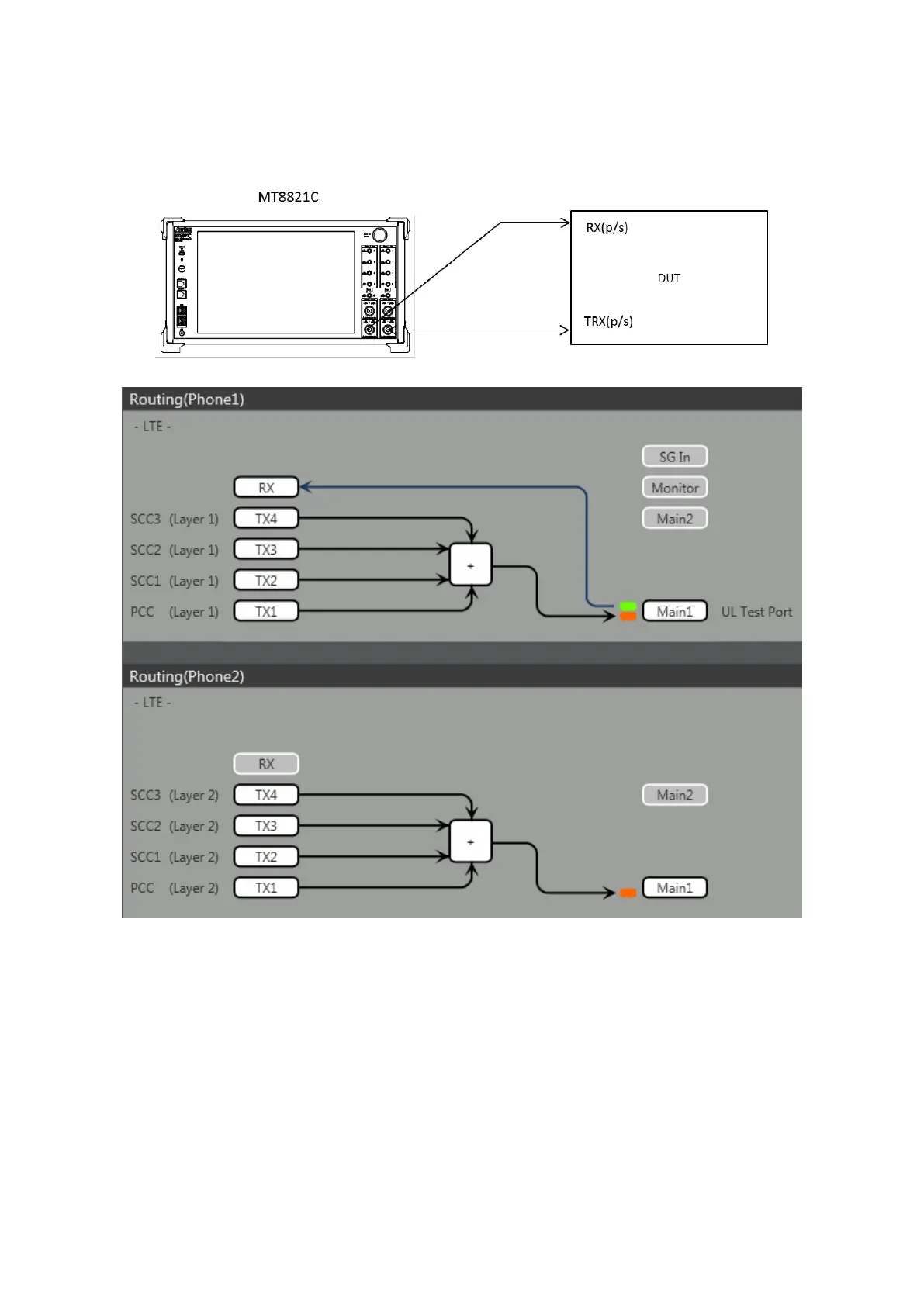and SCC3 are combined by the internal combiner of MT8821C and output at both Main1 connector of Phone1 and