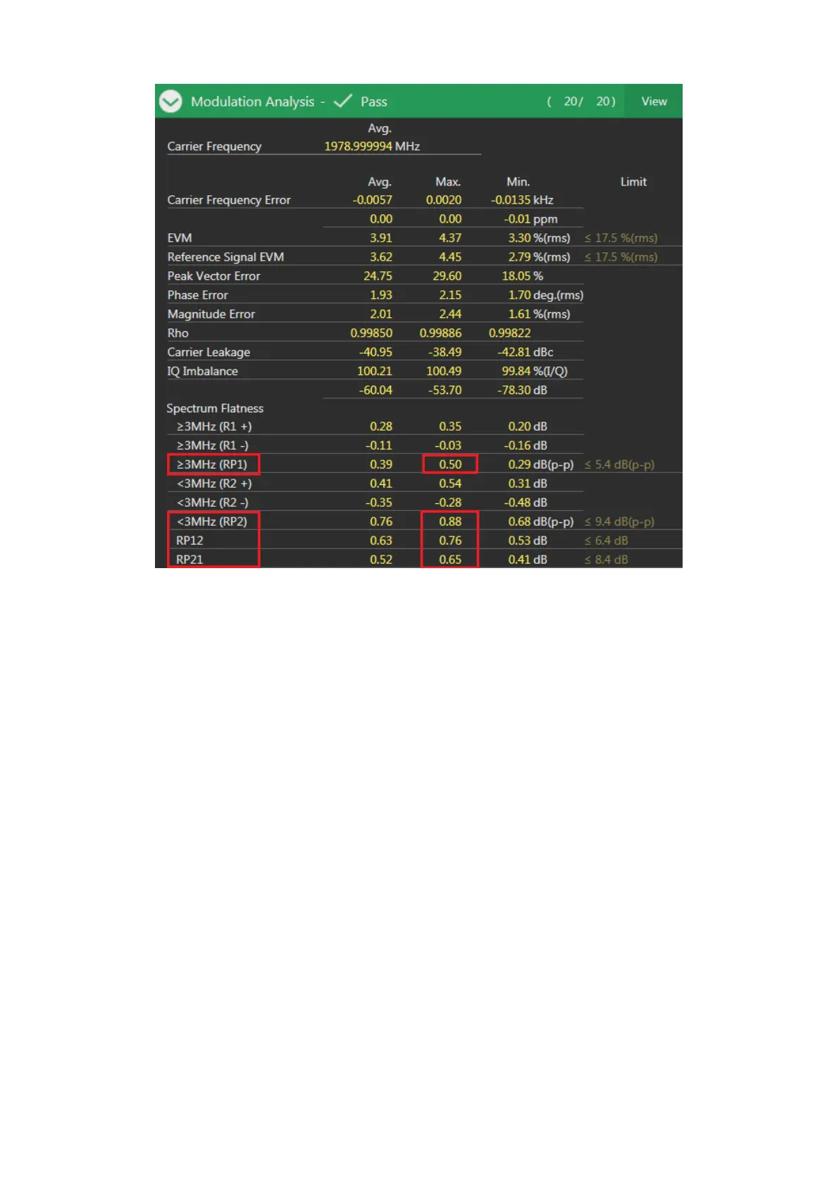 Figure 3.1.26-2 Example of Measurement Result when Test Parameter is TX1 - Max. Power (QPSK/FullRB)