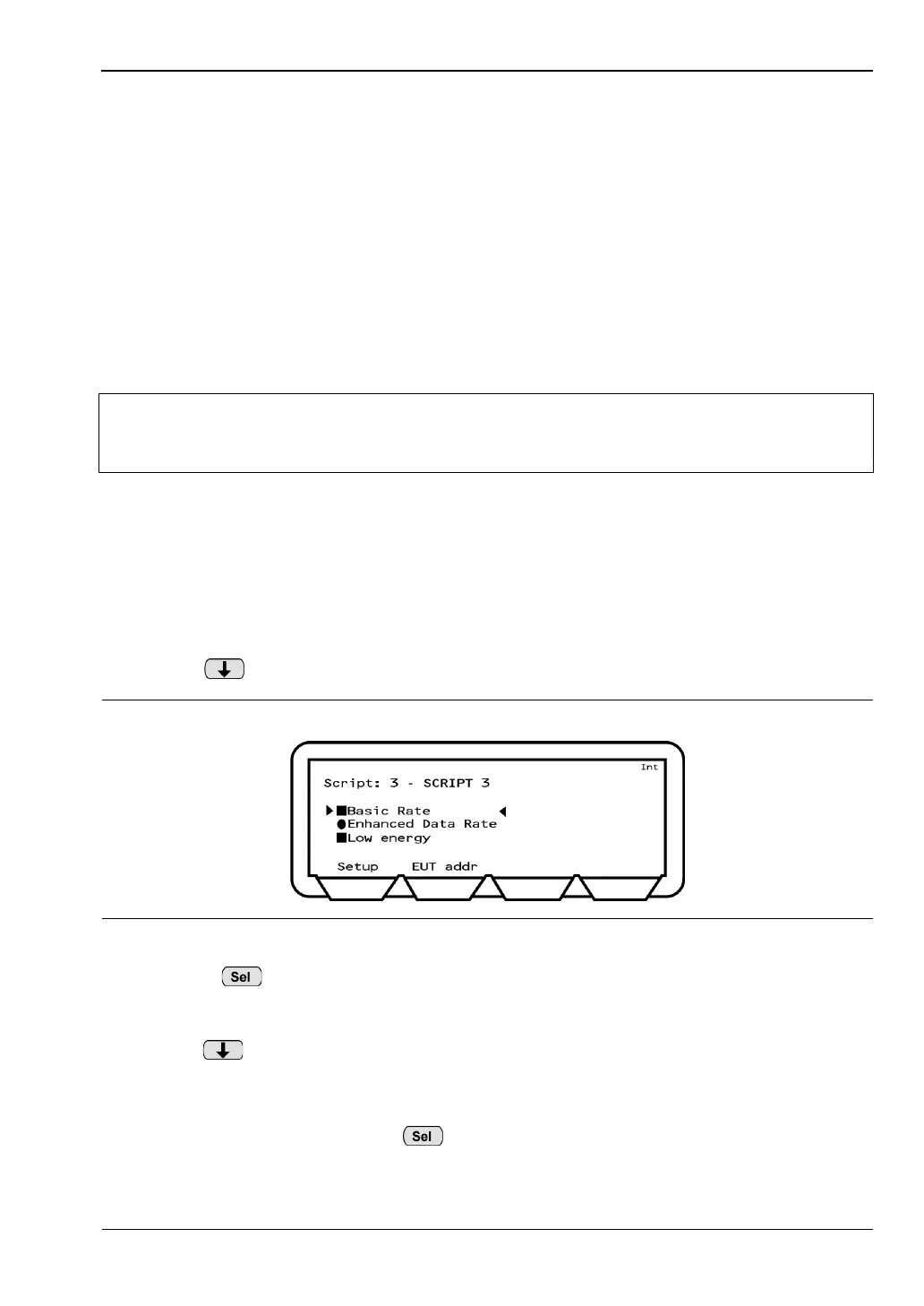 3. Use the key to select or deselect the “Basic Rate” test group as required. A solid