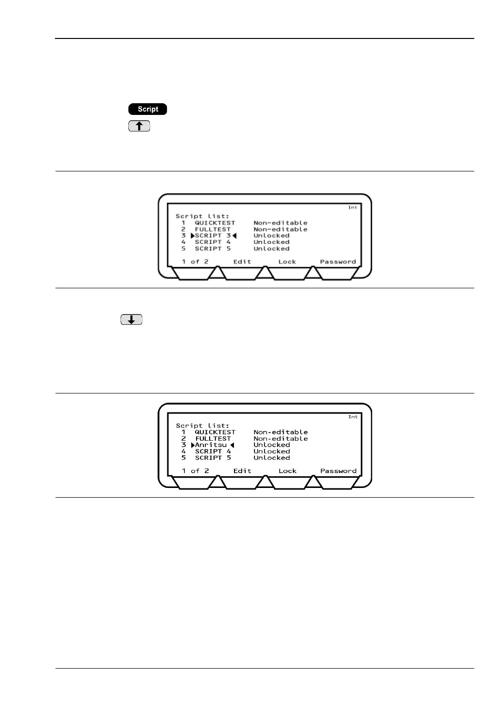 4. Use the key to move the cursor to the script to be named. Scripts 6 to 10 are