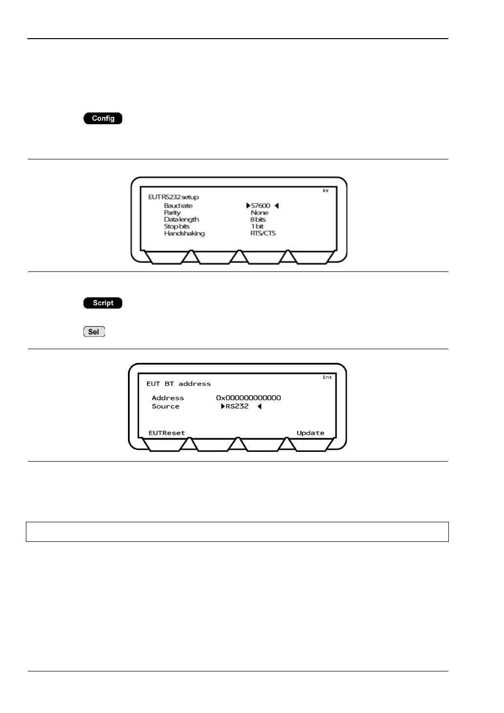 1. Press > “Equipment Under Test (EUT)” > “EUT RS232 setup”. Enter the