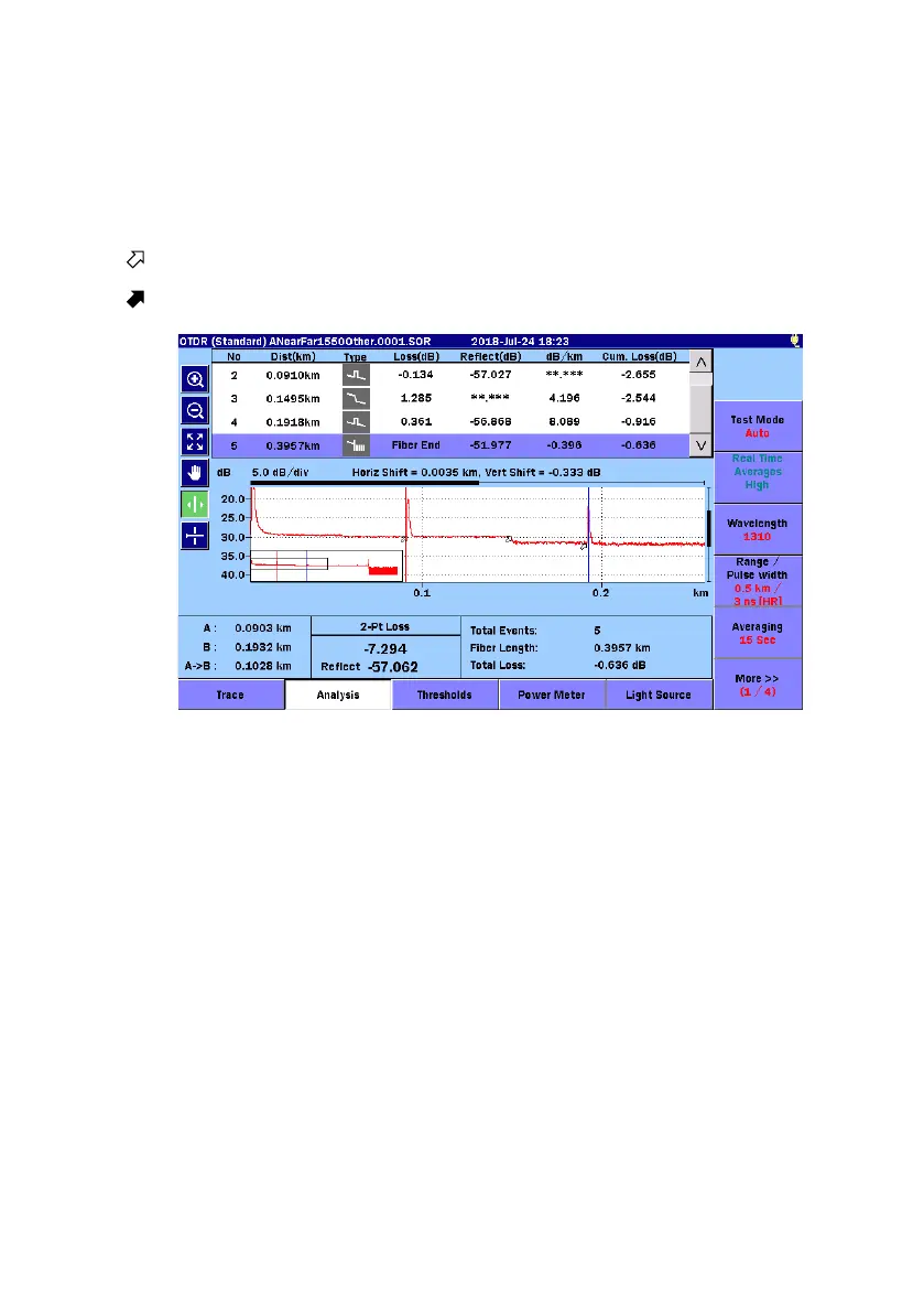 In the Trace screen, touch Analysis, and you will see the Analysis screen.