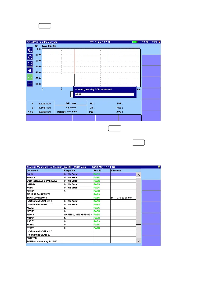 6. When the scenario is completed, PASS or FAIL is displayed in the