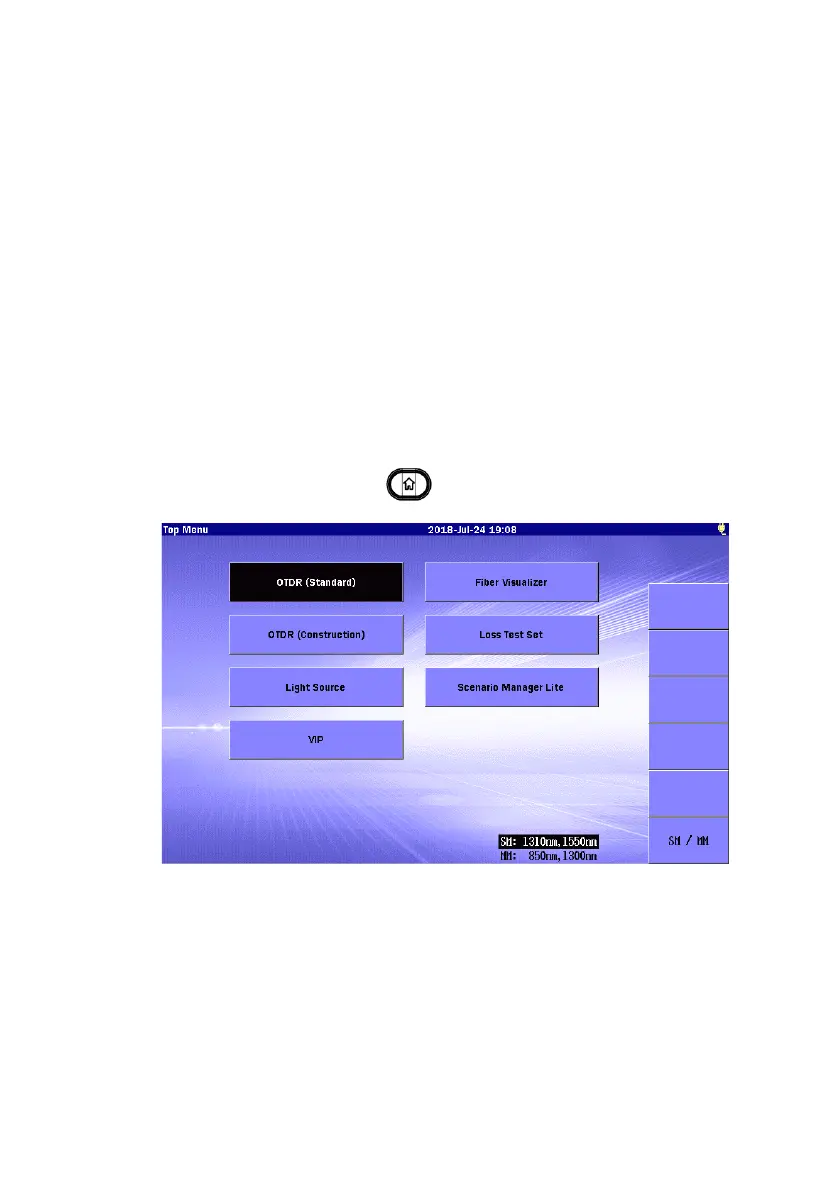 Menu is displayed. Also, you can return from another screen to Top