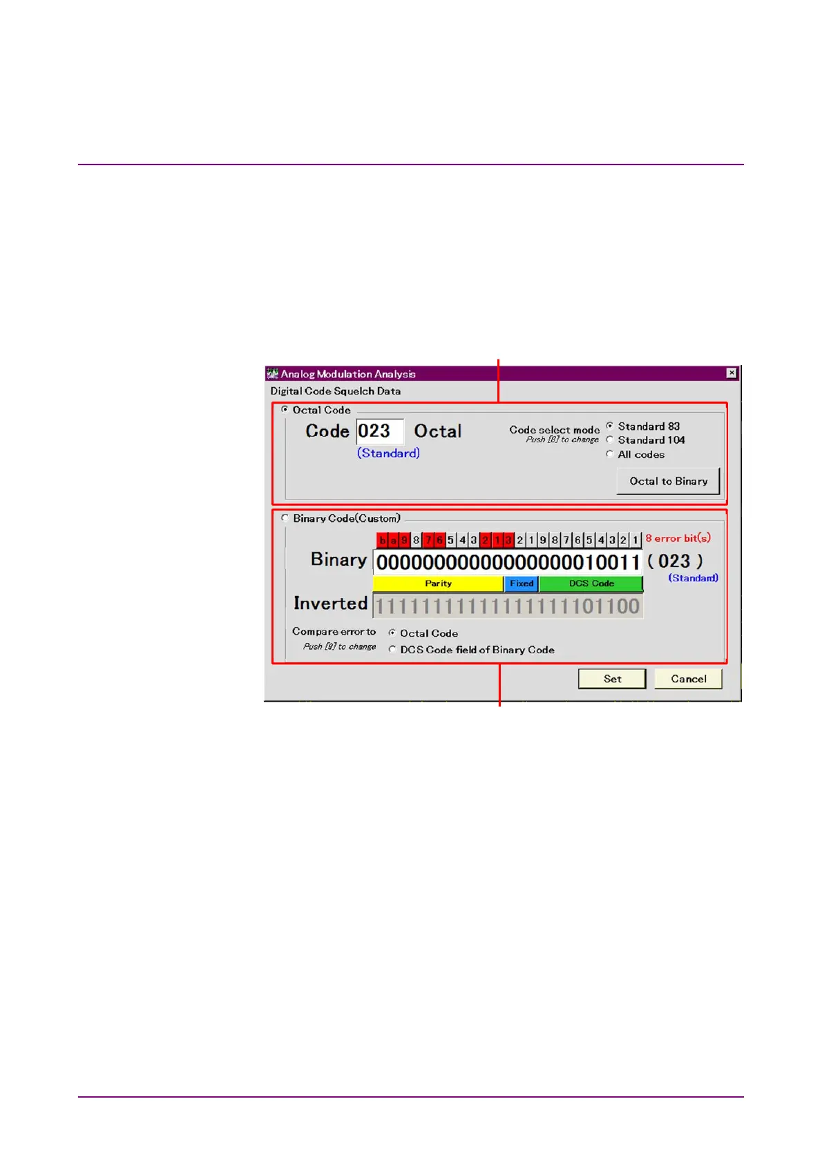 menu, the Digital Code Squelch Data dialog box is displayed. Digital Code