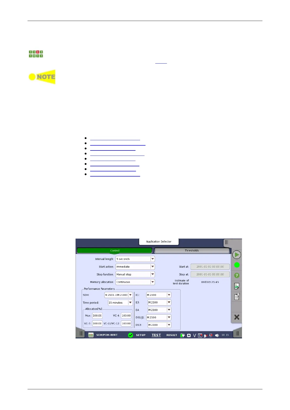 When you go to the test setup of the SDH/SONET/PDH/DSn BERT application,