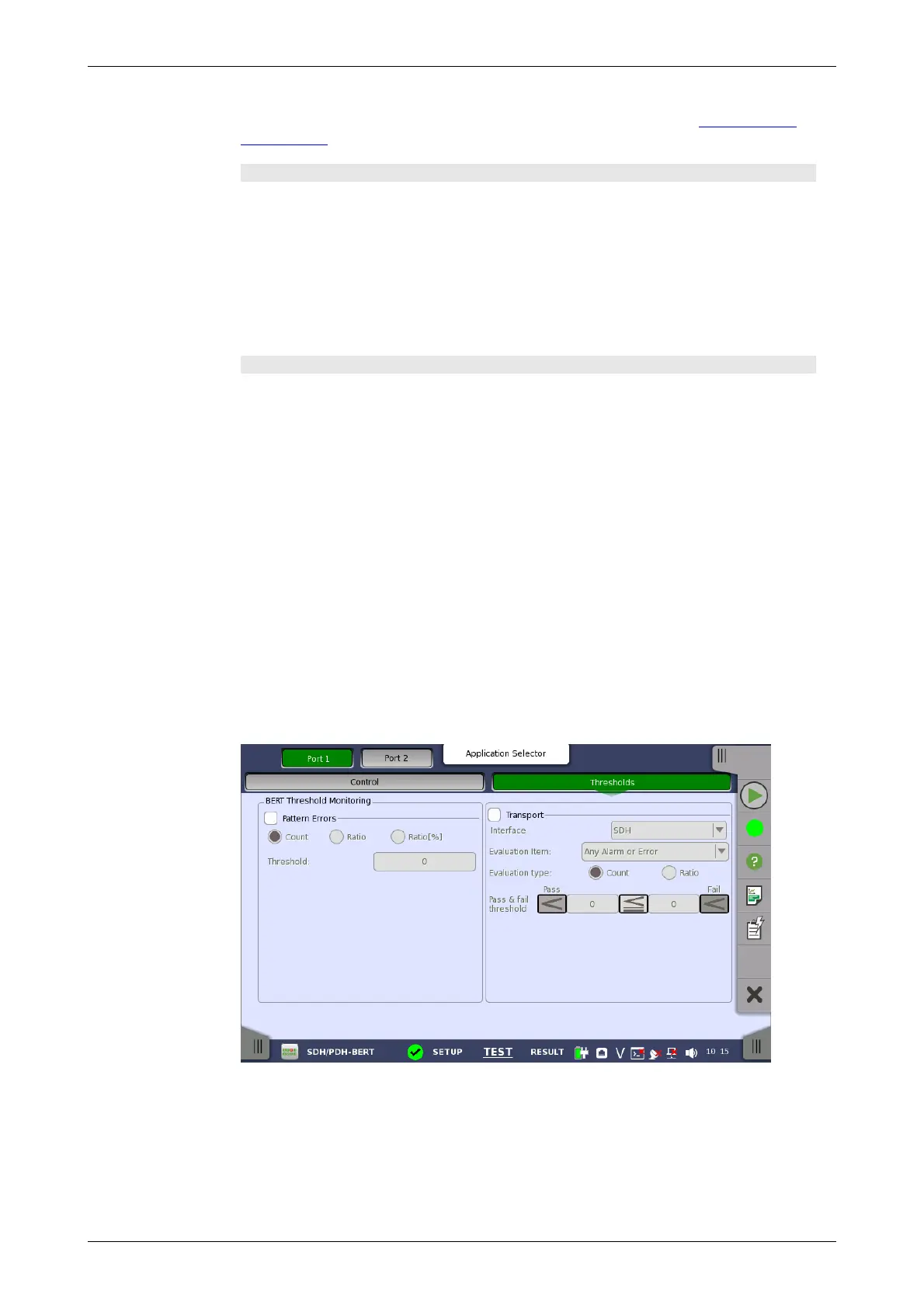 Allows you to enable monitoring of pattern errors (i.e. bit errors) and to set up