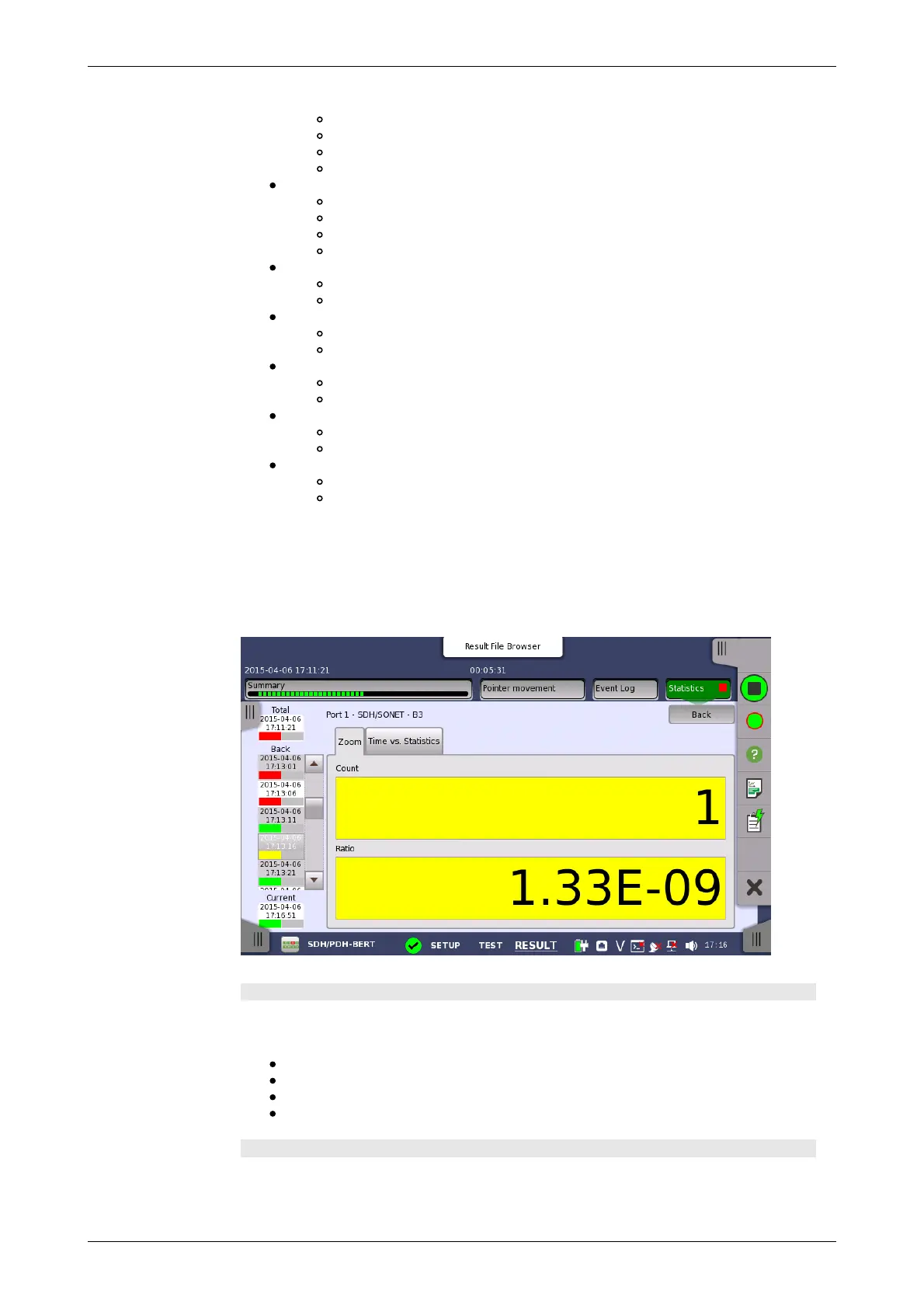 Time vs. Statistics tab page is also available. Touch the Back button to