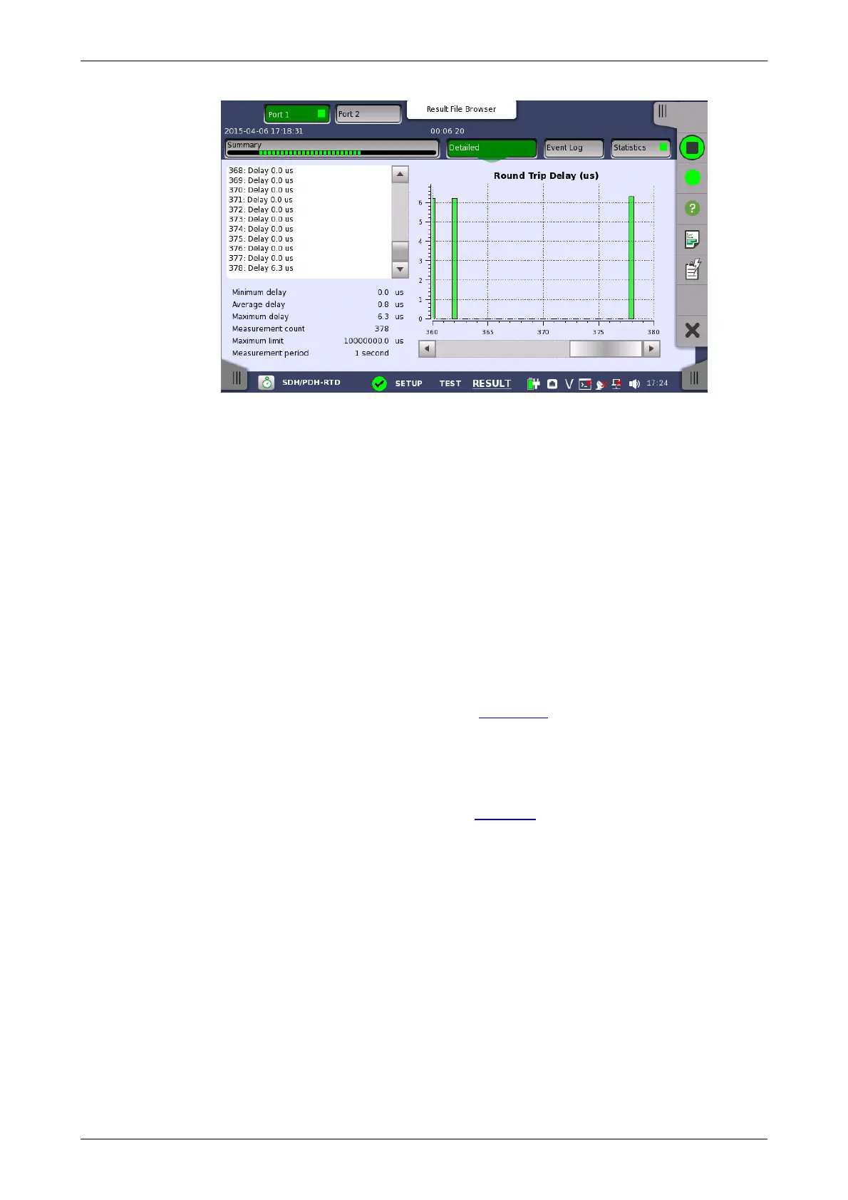 The graphical presentation consists of a bar diagram of the round-trip delay