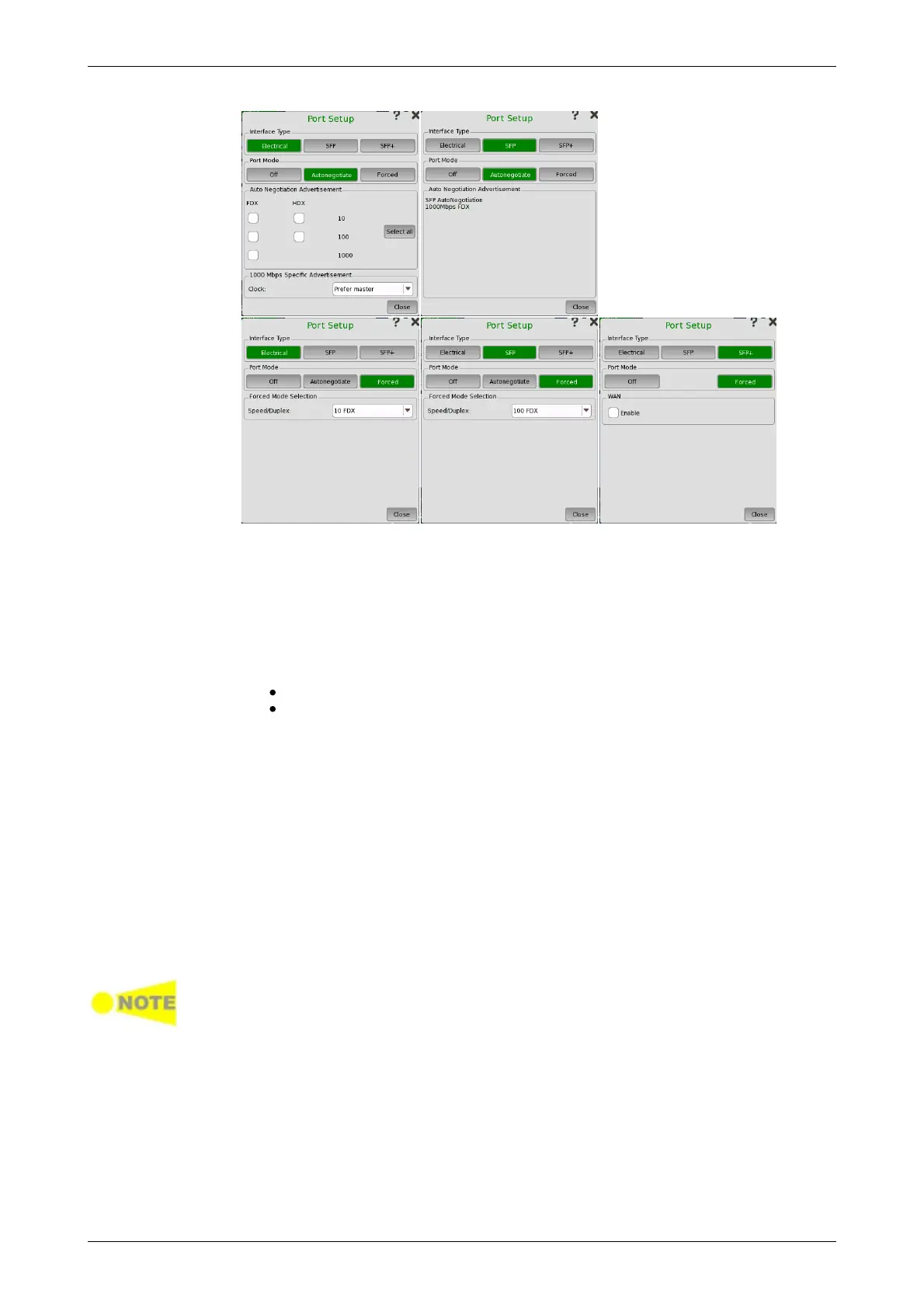 Selecting the Forced port mode with interface type specified as Electrical