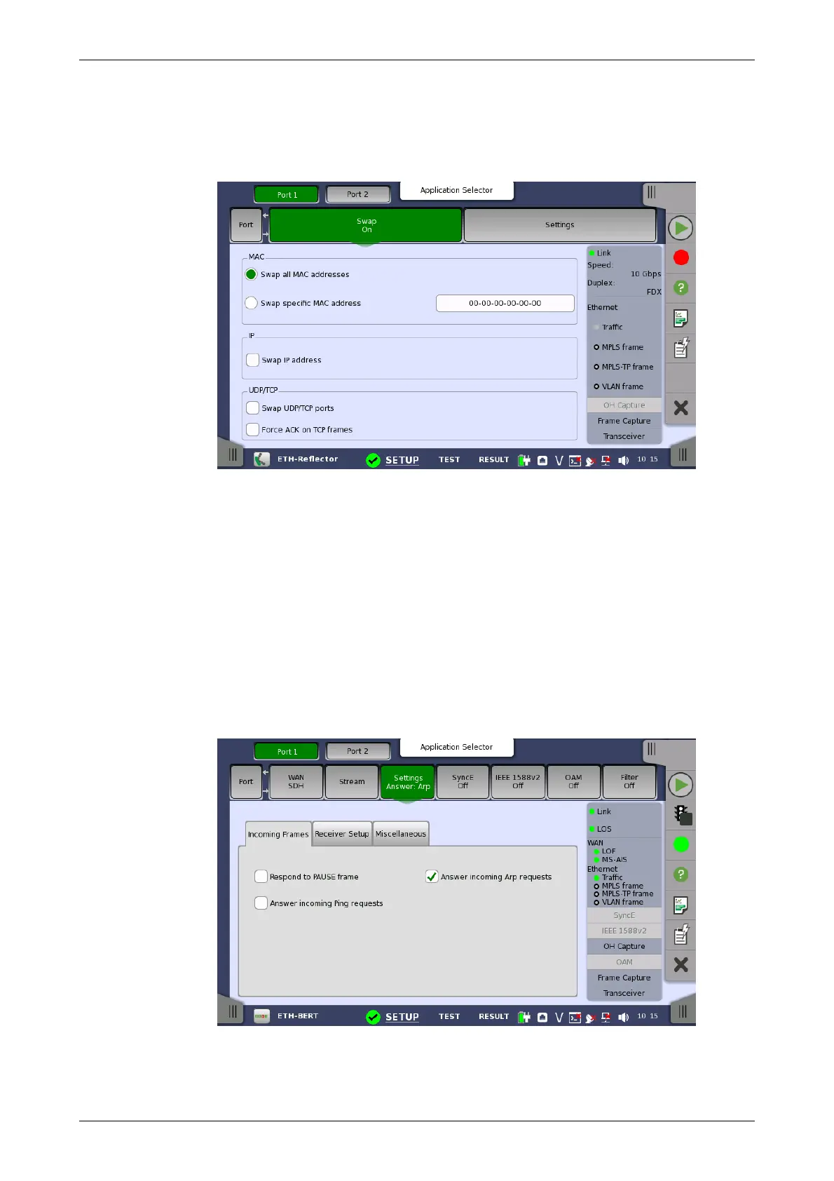Selecting Swap all MAC addresses will transmit/reflect all received frames