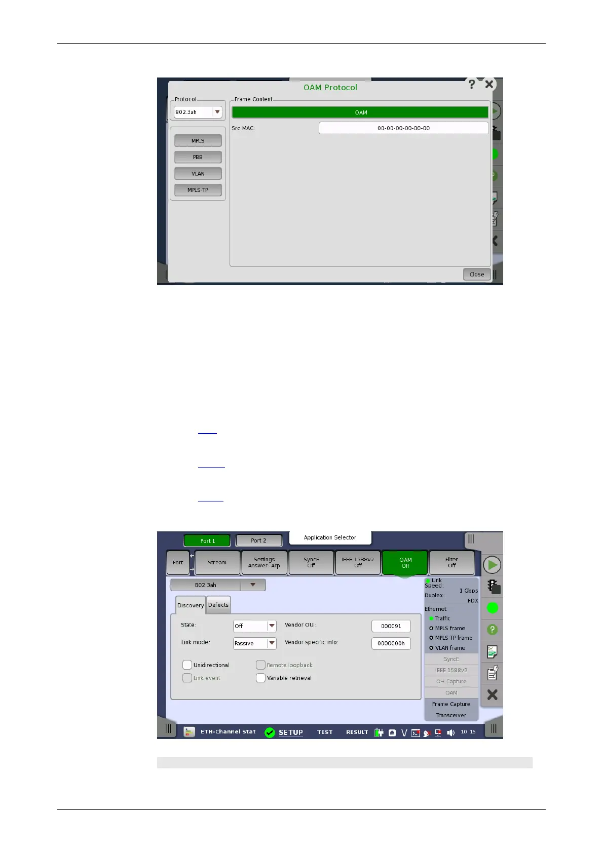 In the OAM Protocol dialog box the buttons on the left-hand side allow you