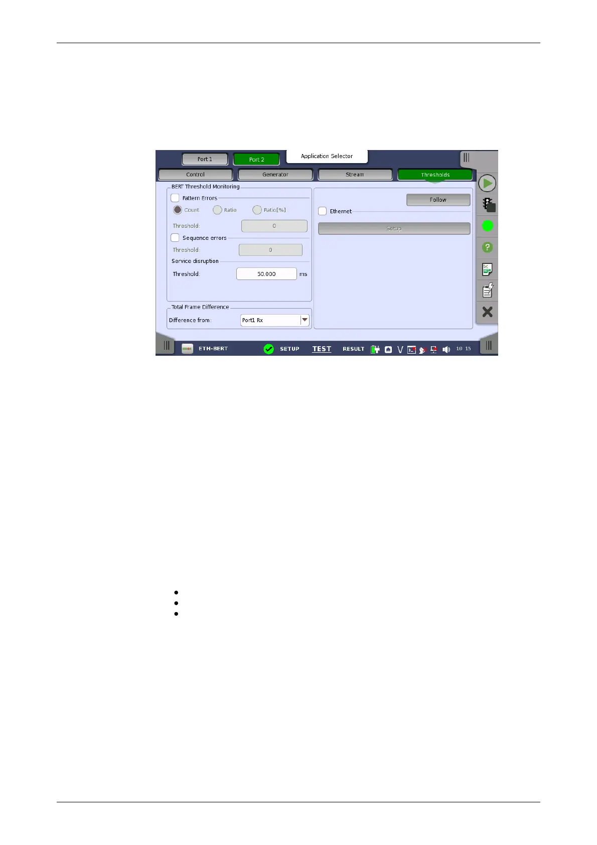 Allows you to enable monitoring of pattern errors (i.e. bit errors) and to set up