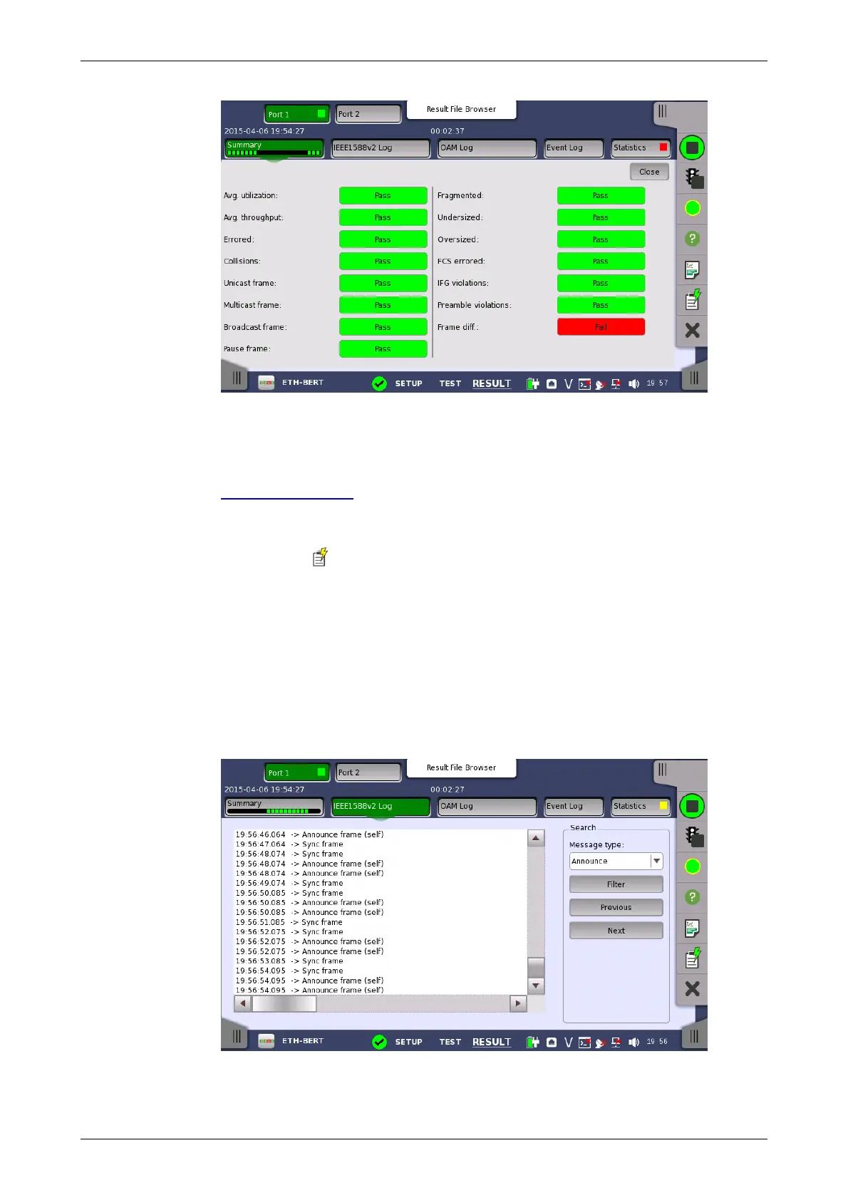 This screen presents an IEEE1588v2 Log of the test results. You can search