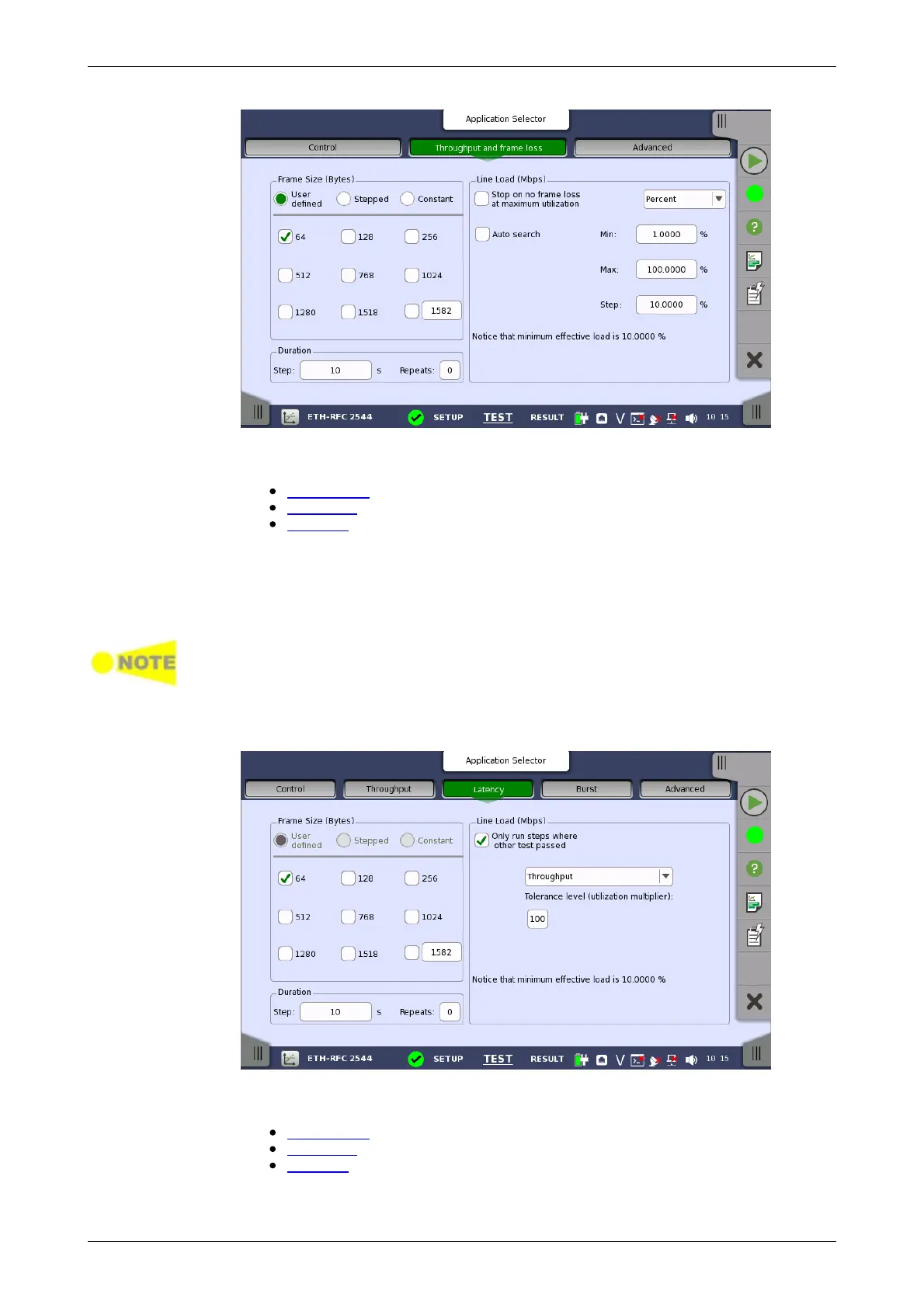 The settings for 'Throughput and Frame Loss' are identical to the ones