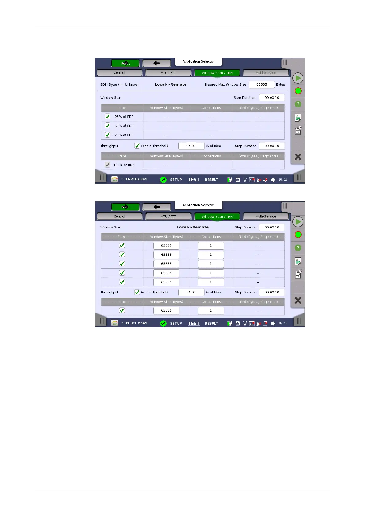 "Control" screen, calculated BDP (Bandwidth-Delay Product) appears.