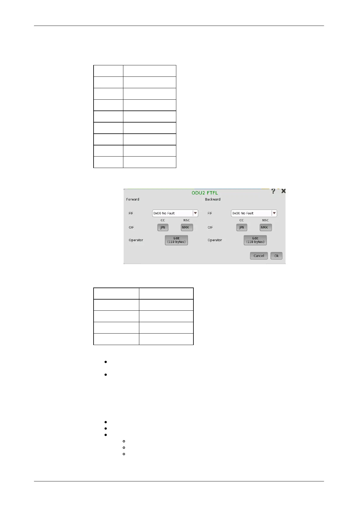 The FTFL message consists of two 128-byte fields. Launch the ODUk FTFL