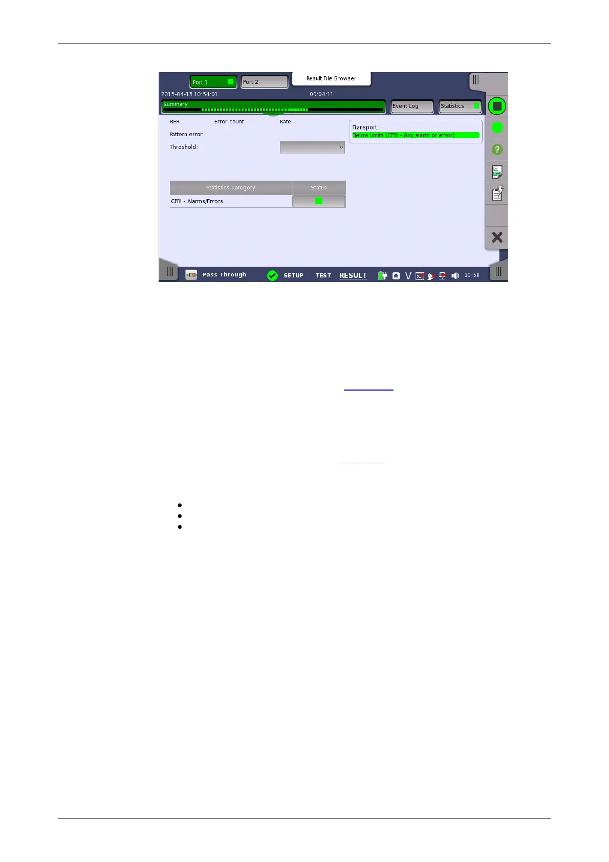 This screen contains a summary of the results of the CPRI Pass Through test.