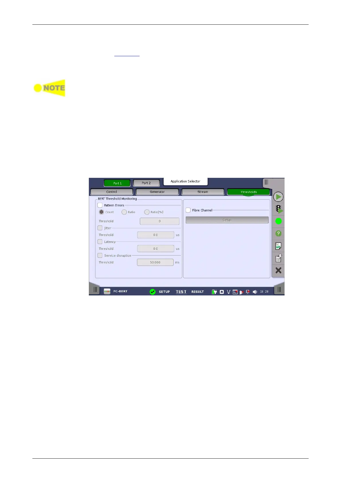 the Setup button to display the Fibre Channel threshold setup dialog
