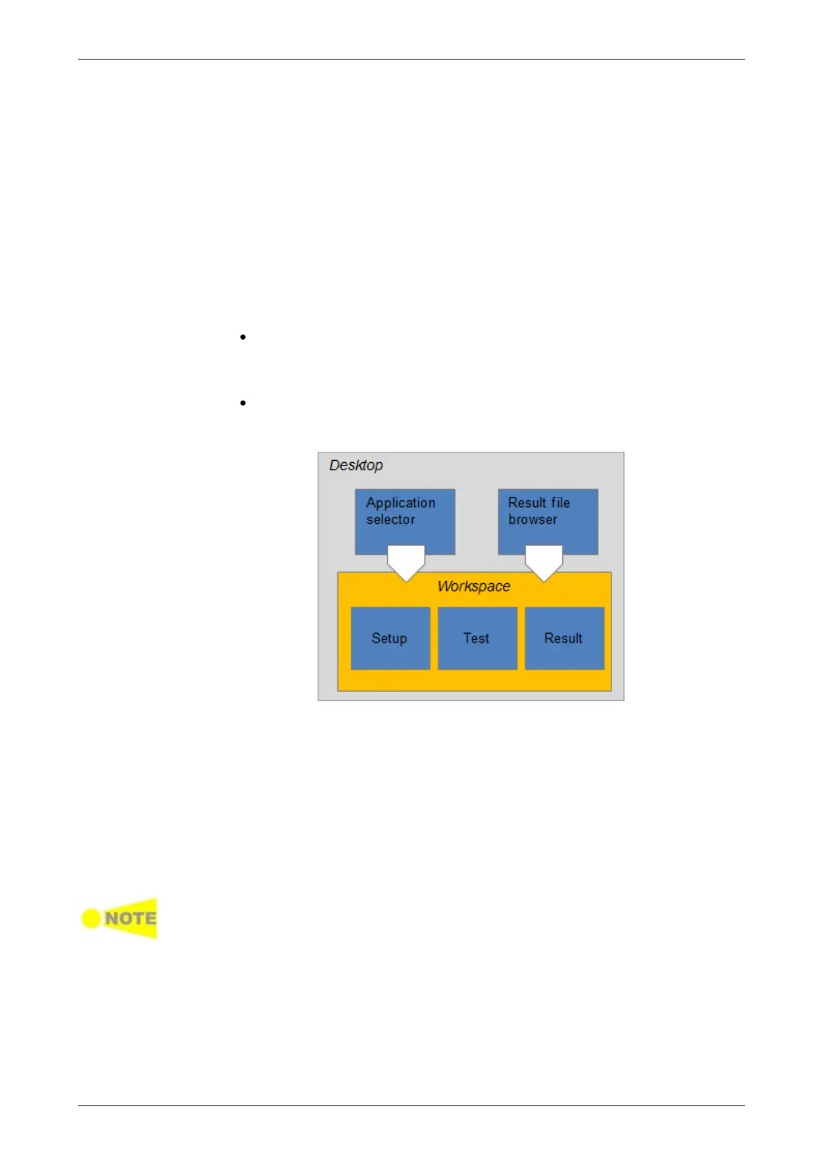 The workspace is where you work with a specific application (i.e. set up