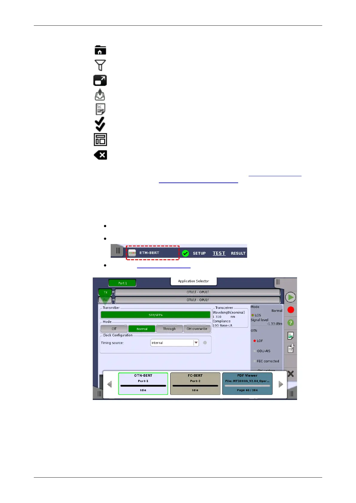 In addition to the buttons for accessing and handling test results, the result