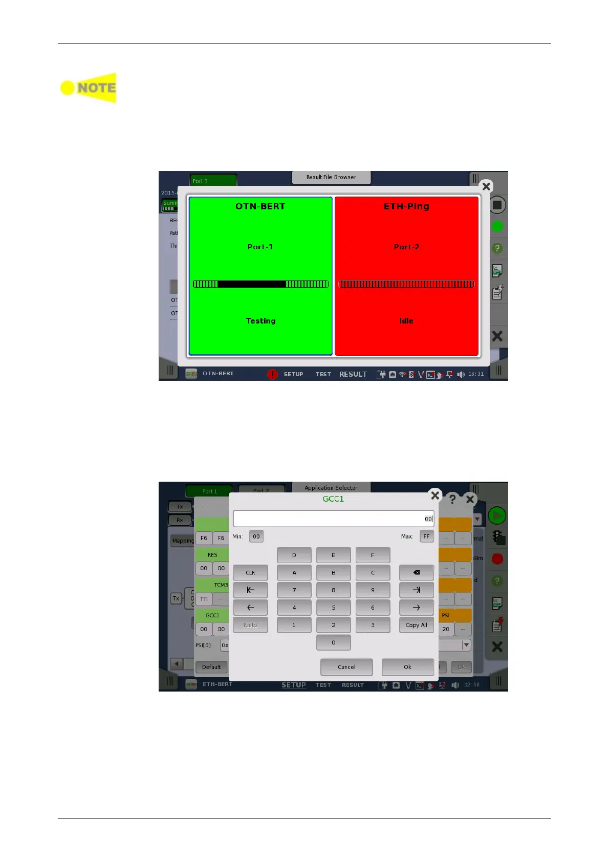 Touching the summarized Test Status icon will open a dialog showing the