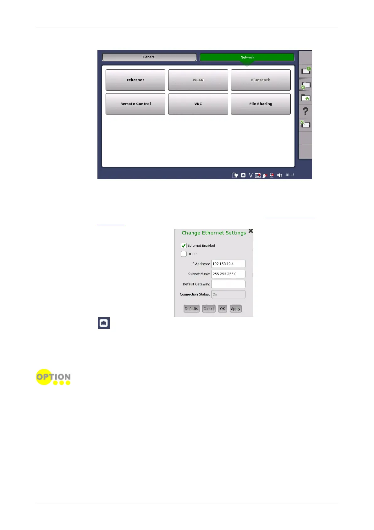 and default gateway. These settings are applied for the Ethernet service