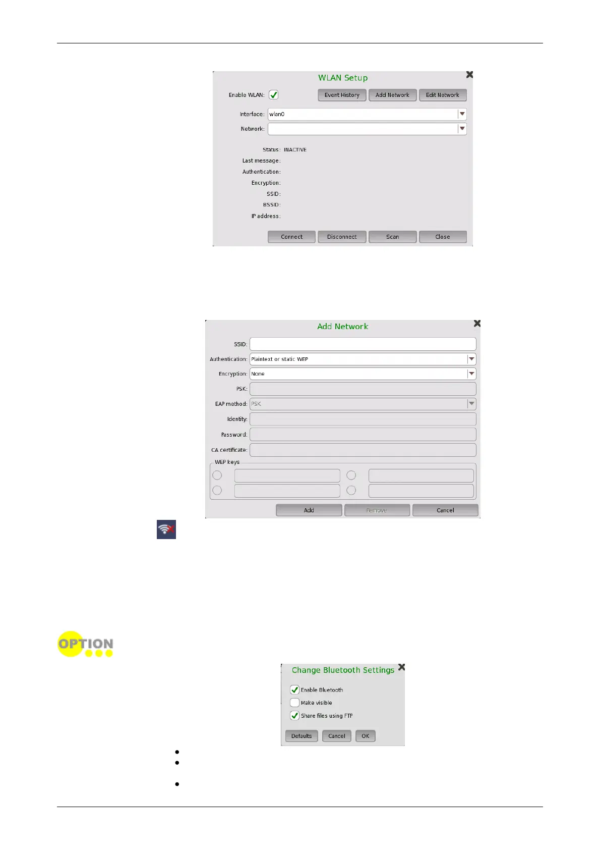 1. Touch the WLAN button. WLAN Setup dialog box appears.