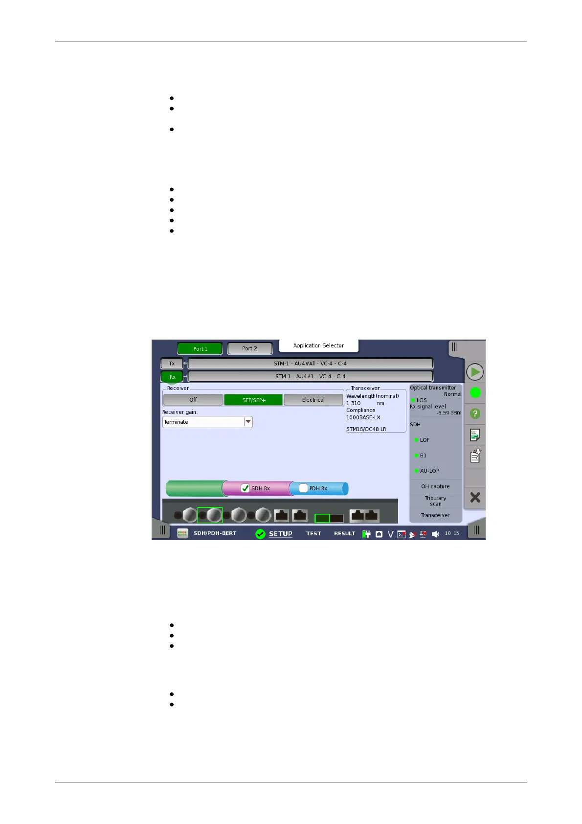 When the receiver is set up with an SDH interface, touching the Rx button in