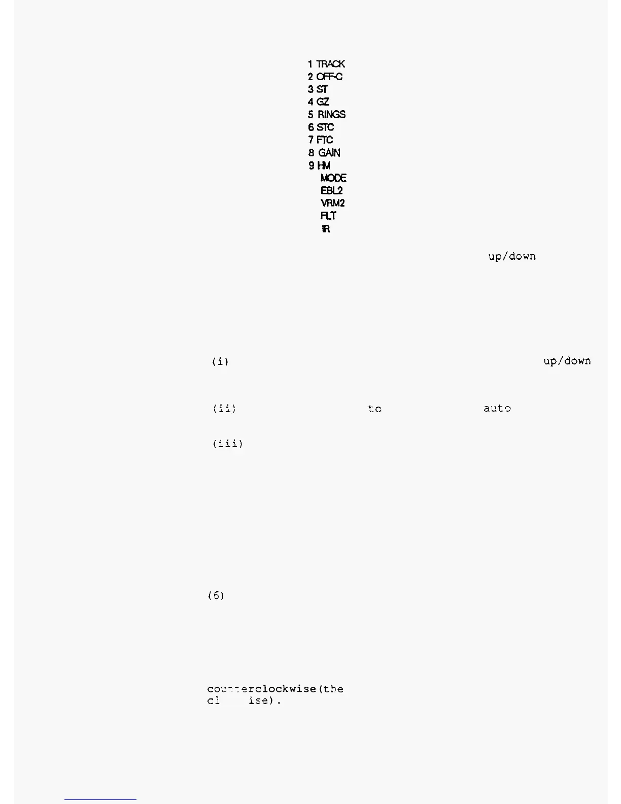 counterclockwise); turning the control knob counter