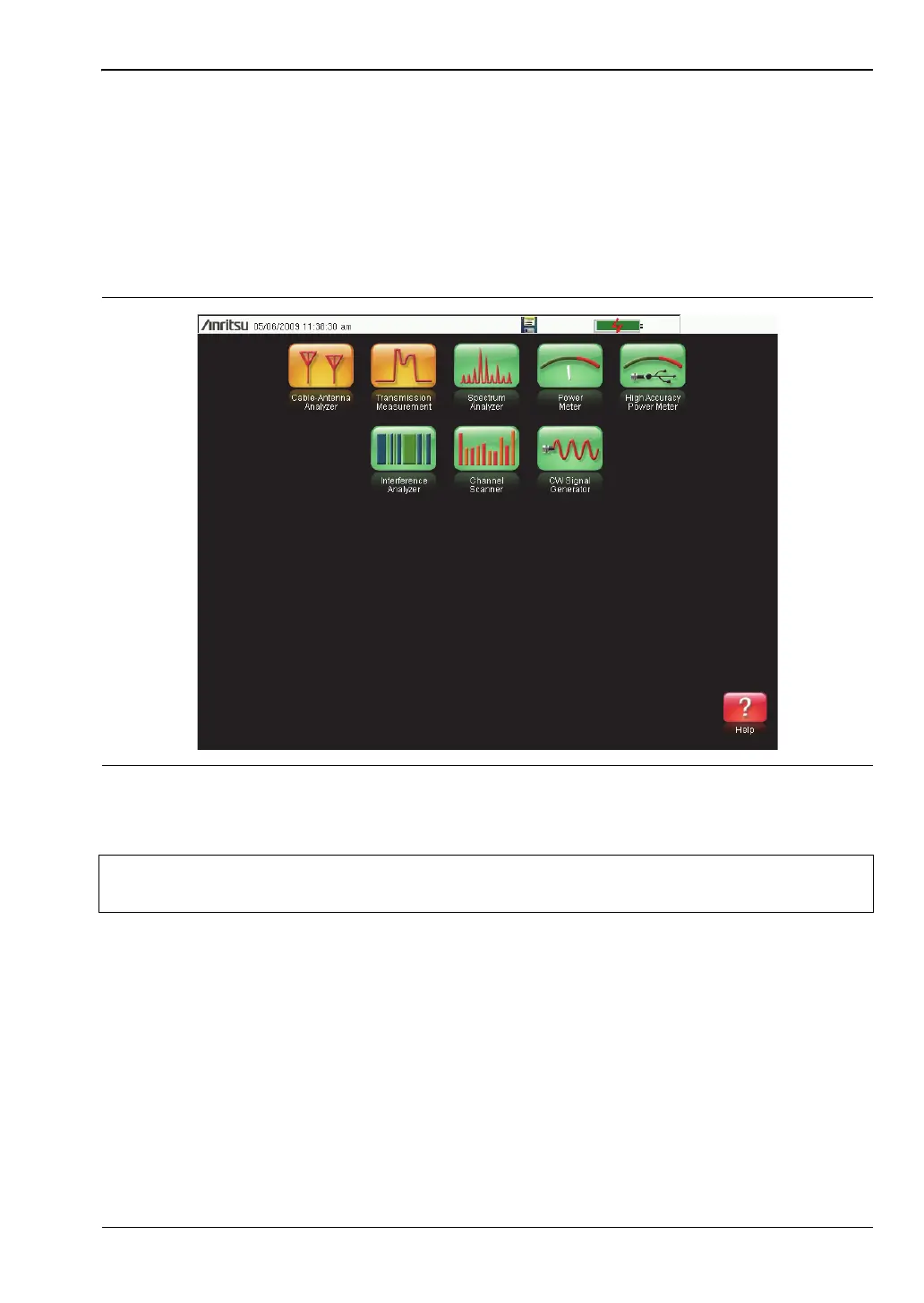Press this key to display a grid of shortcut icons for installed measurement modes and user