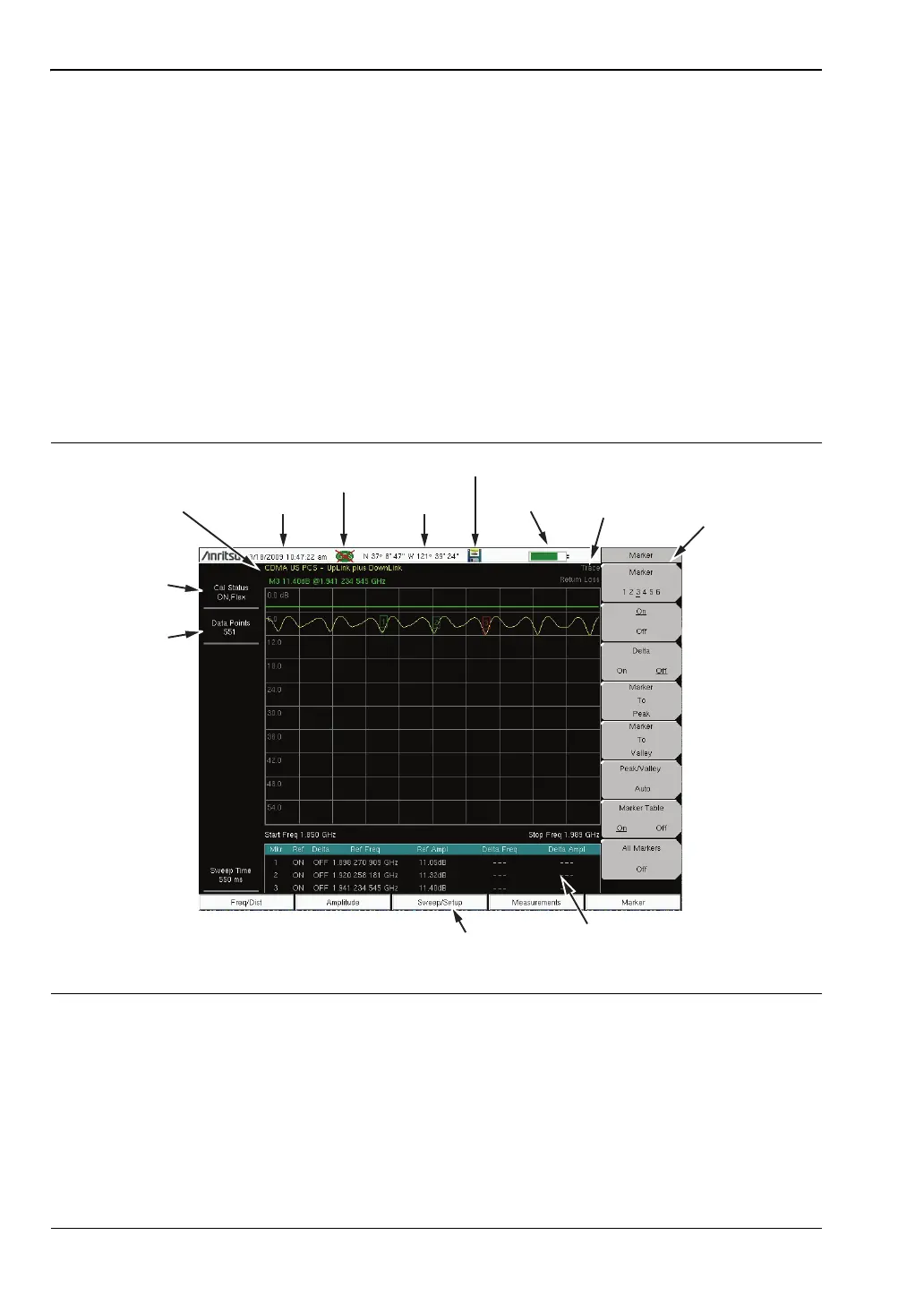 Figure 2-5 and Figure 2-6 illustrate some of the key information areas of the Site Master in