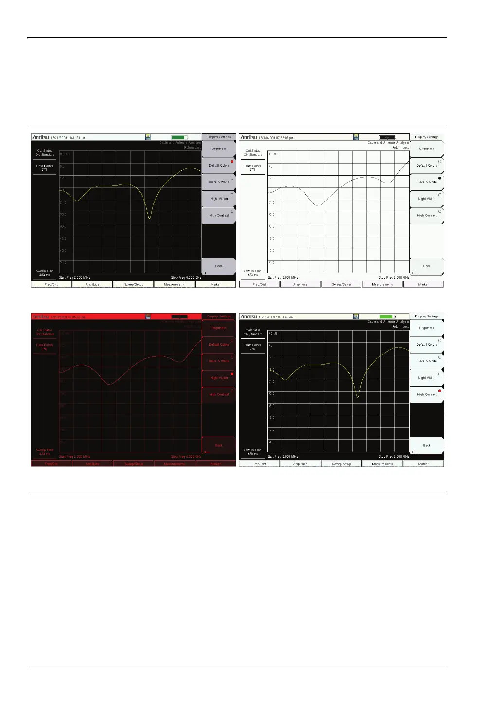 In addition to the default color display, Site Master offers the following display settings: