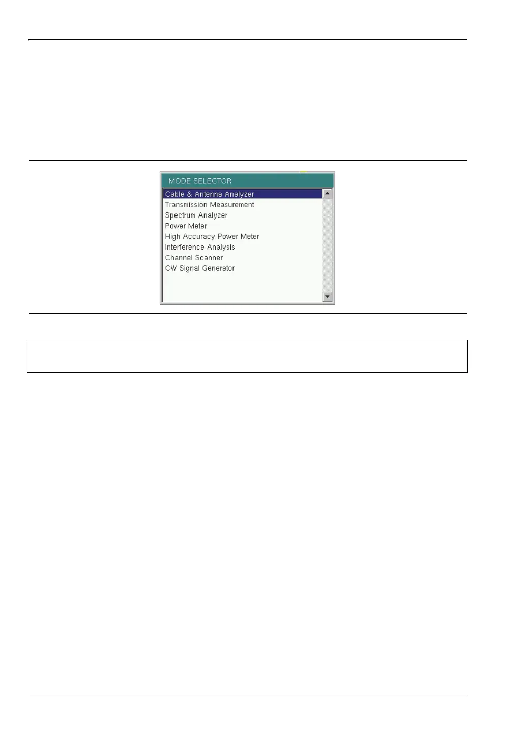 The display of the Mode Selector will vary depending on Site Master model and