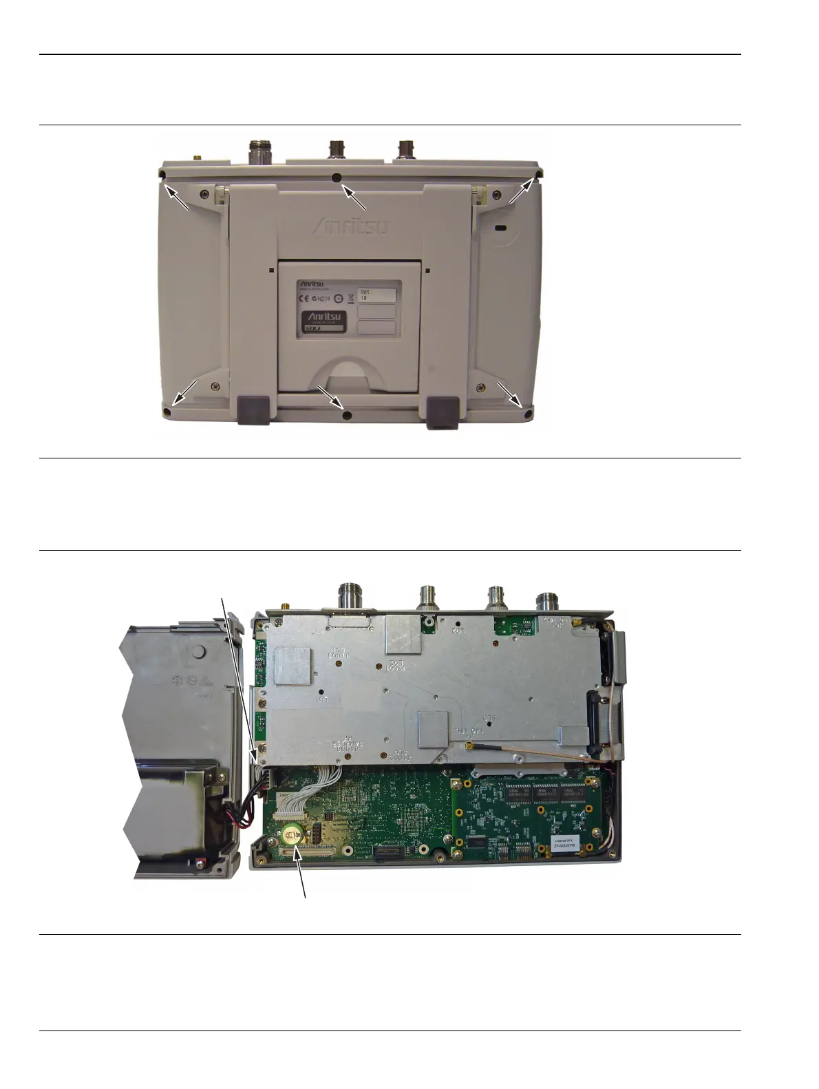 6. Lay the Site Master flat and remove the battery connector cable between the two halves (Figure 6-3).