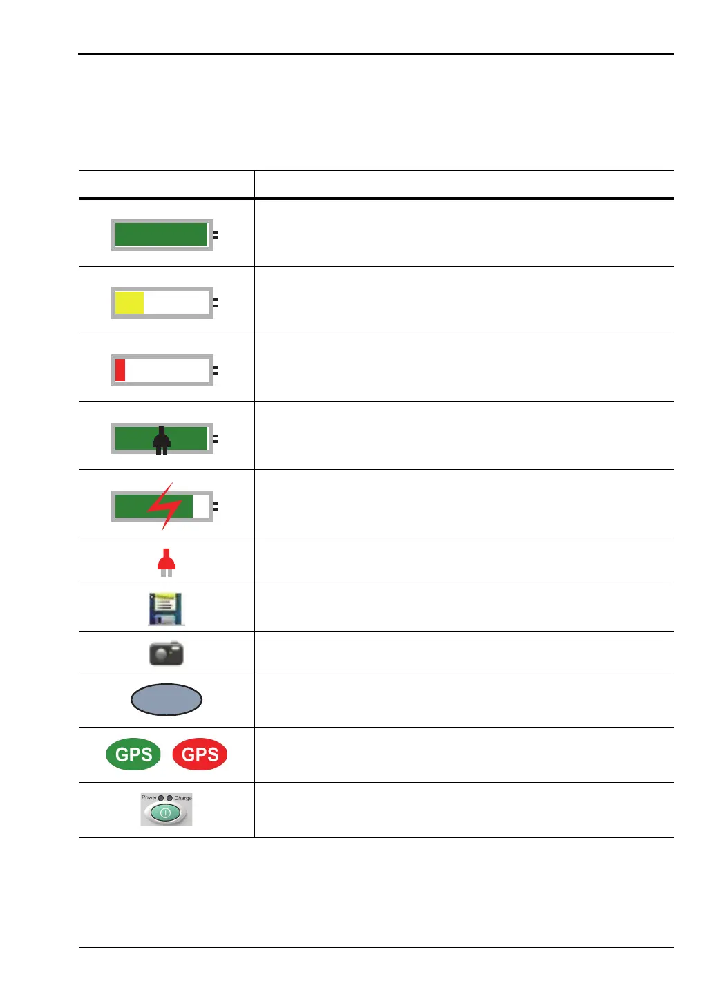 The following symbols, icons, and indicators convey the instrument status or condition on the