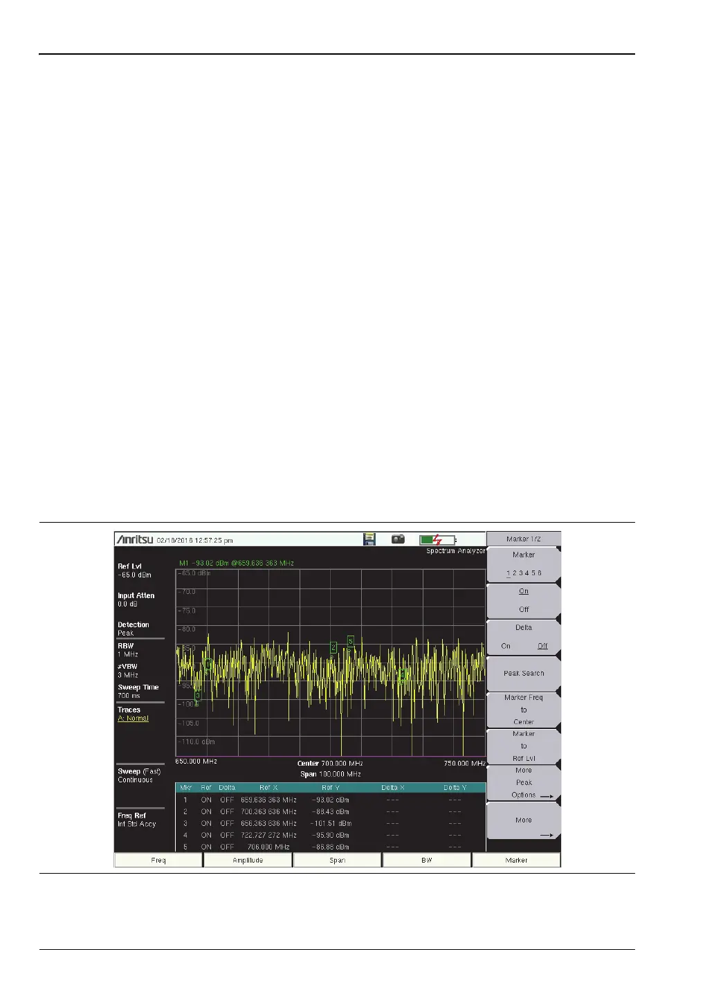 1. Press the Marker 1 2 3 4 5 6 submenu key and select the desired delta marker. The
