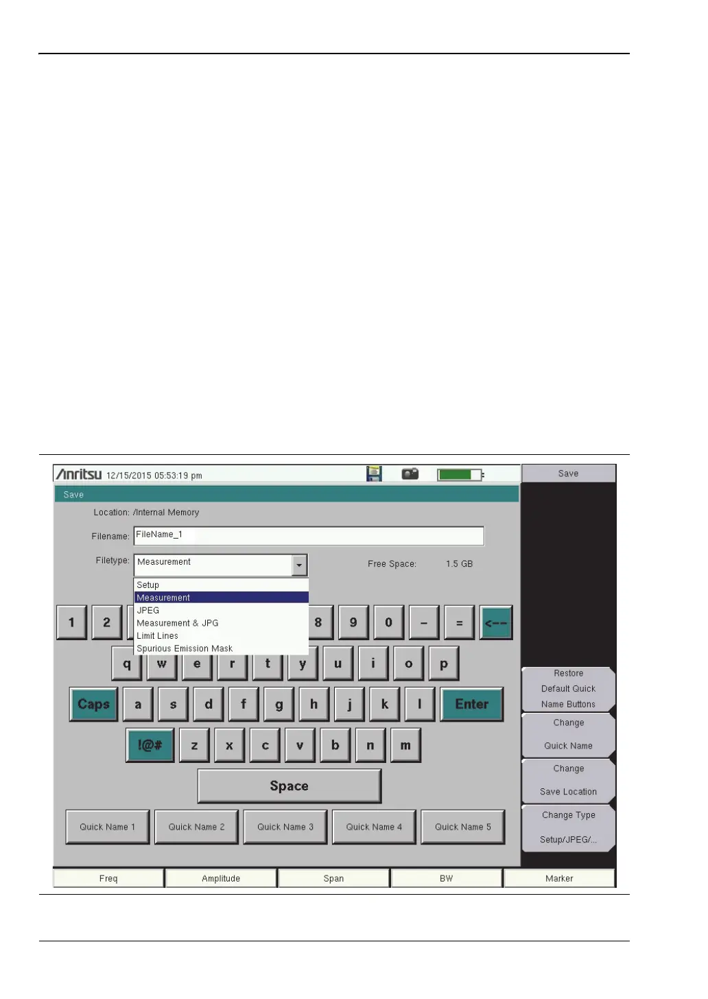 Measurement submenu key or the Save key. In the Save dialog, you can enter the file name