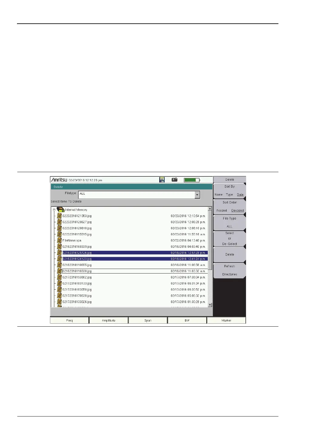 can delete a single or multiple files or folders. Items to be deleted may be in the instrument’s