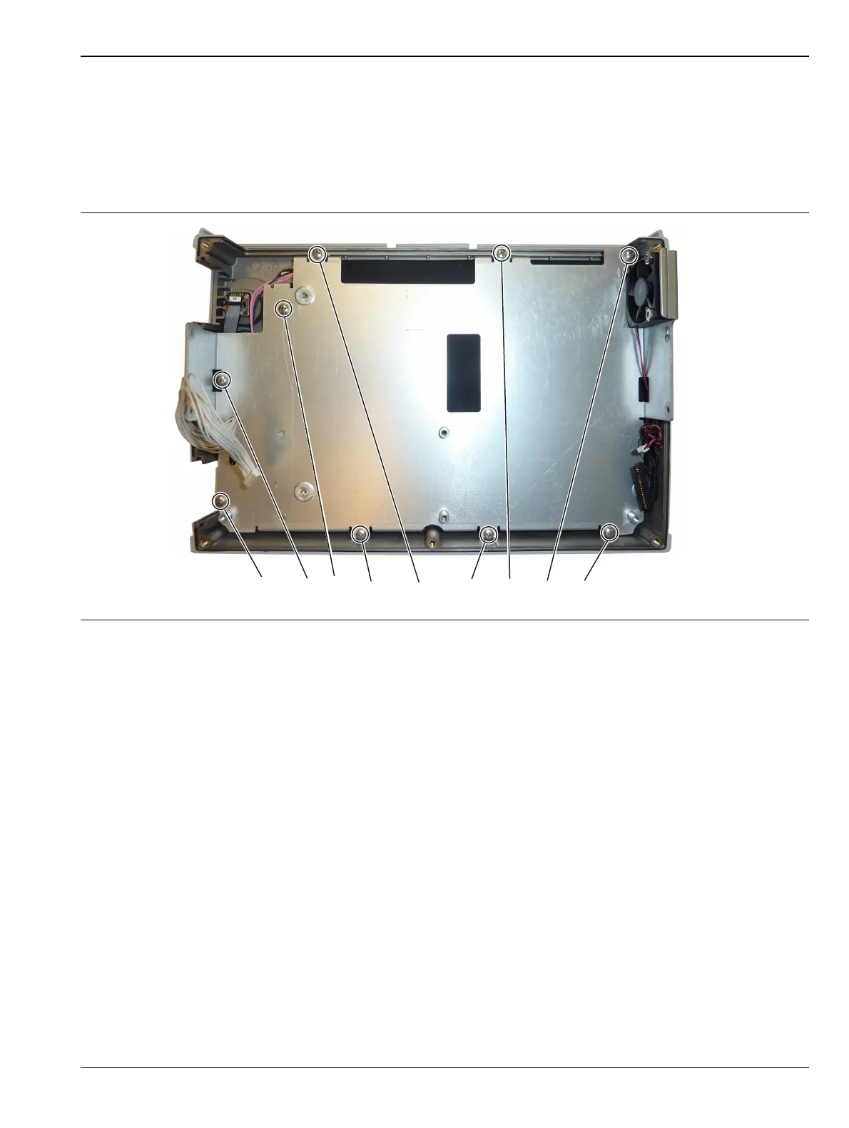 3. Remove the 9 screws connecting the LCD assembly to the front half of the case, see Figure 6-11.